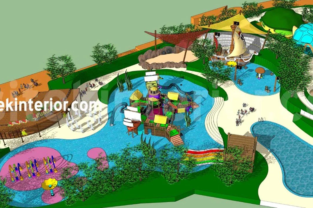 - Gambar 3d waterpark mini pada zona anak-anak, masing-masing zona usia mempunyai area yang berbeda-beda.